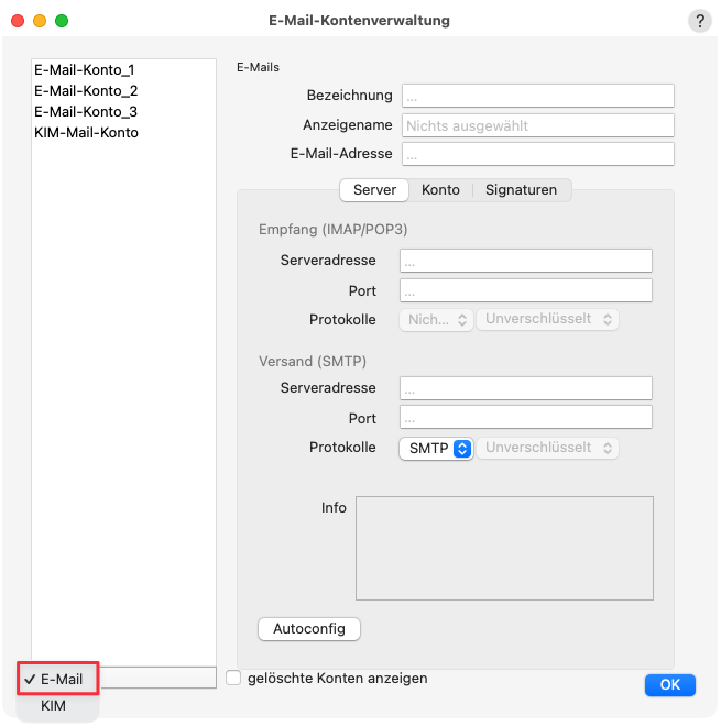 Einrichtungsassistent für E-Mail-Konten